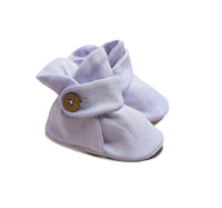 Our organic cotton baby booties are designed to keep tiny feet warm while staying comfortably in place. They're made from soft cotton with an adjustable button closure that helps keep them secure through movement and wear.